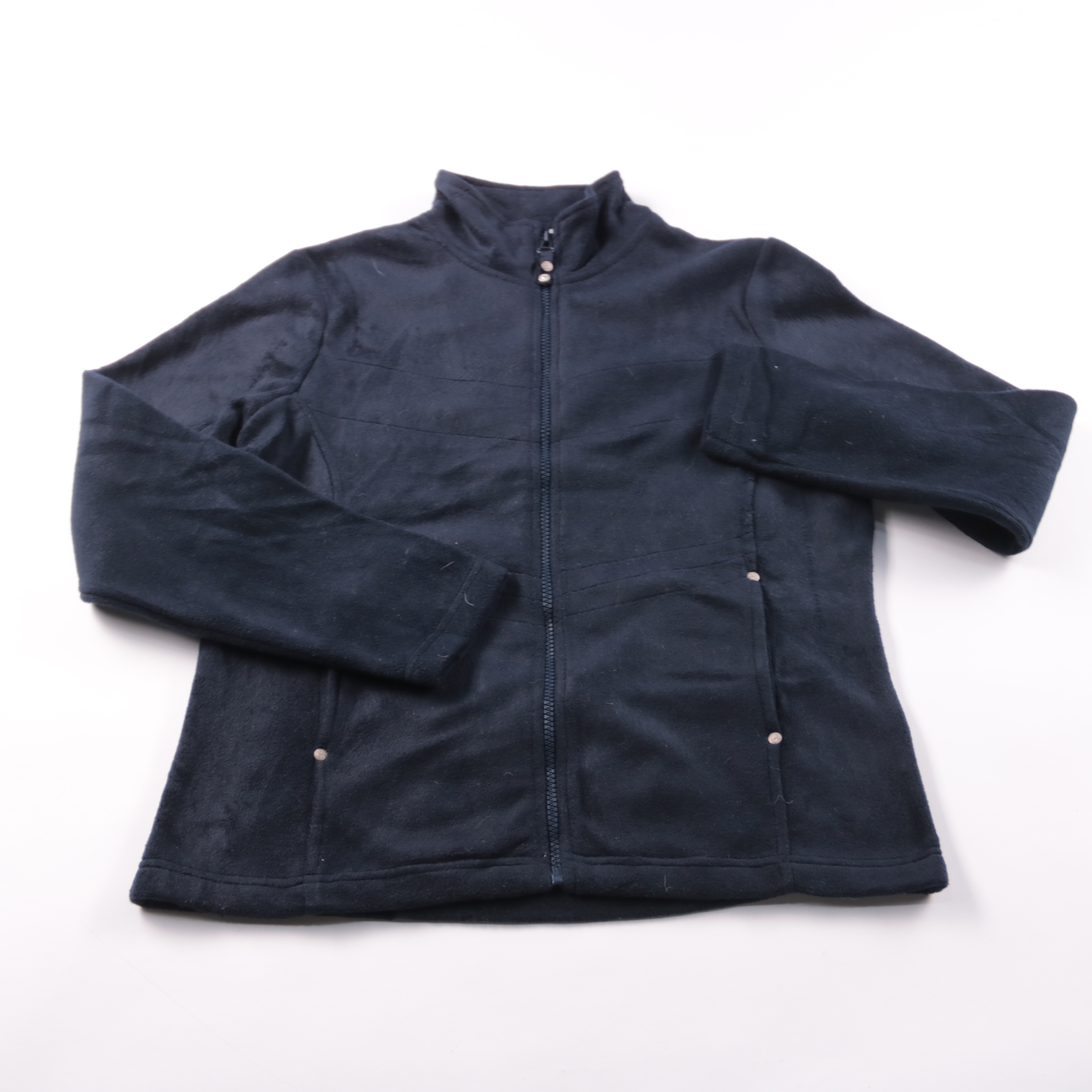 Женская флисовая кофта M&Co тёмно-синего цвета на молнии, с воротником-стойкой и боковыми карманами. Подойдёт для прогулок и повседневной носки в прохладную погоду, удобно носить как второй слой под куртку. Практичный материал 100% полиэстер быстро сох...