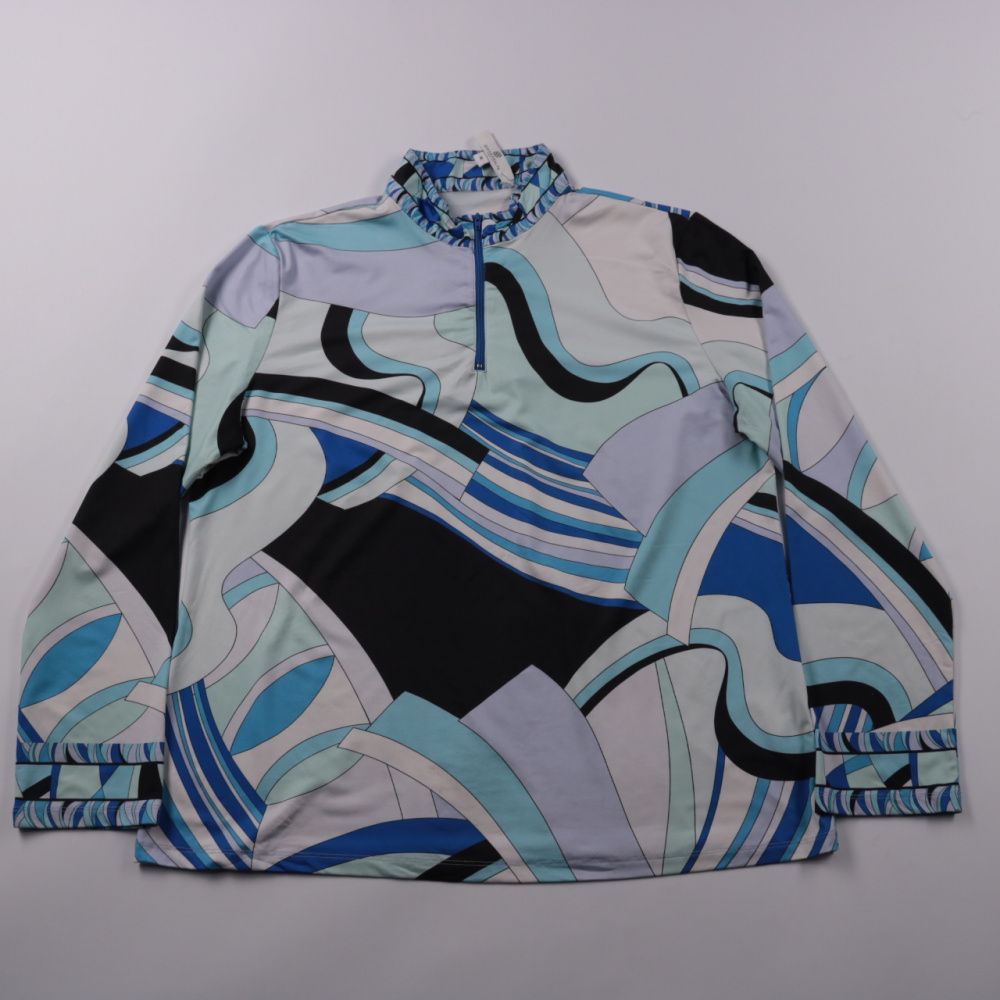 Кофта Jean-Pierreklifa с короткой молнией у горловины и ярким абстрактным принтом в сине-бирюзовой гамме. Подойдёт для повседневных образов и активных прогулок в прохладную погоду благодаря эластичной ткани. Практичный плюс — материал почти не мнётся и...