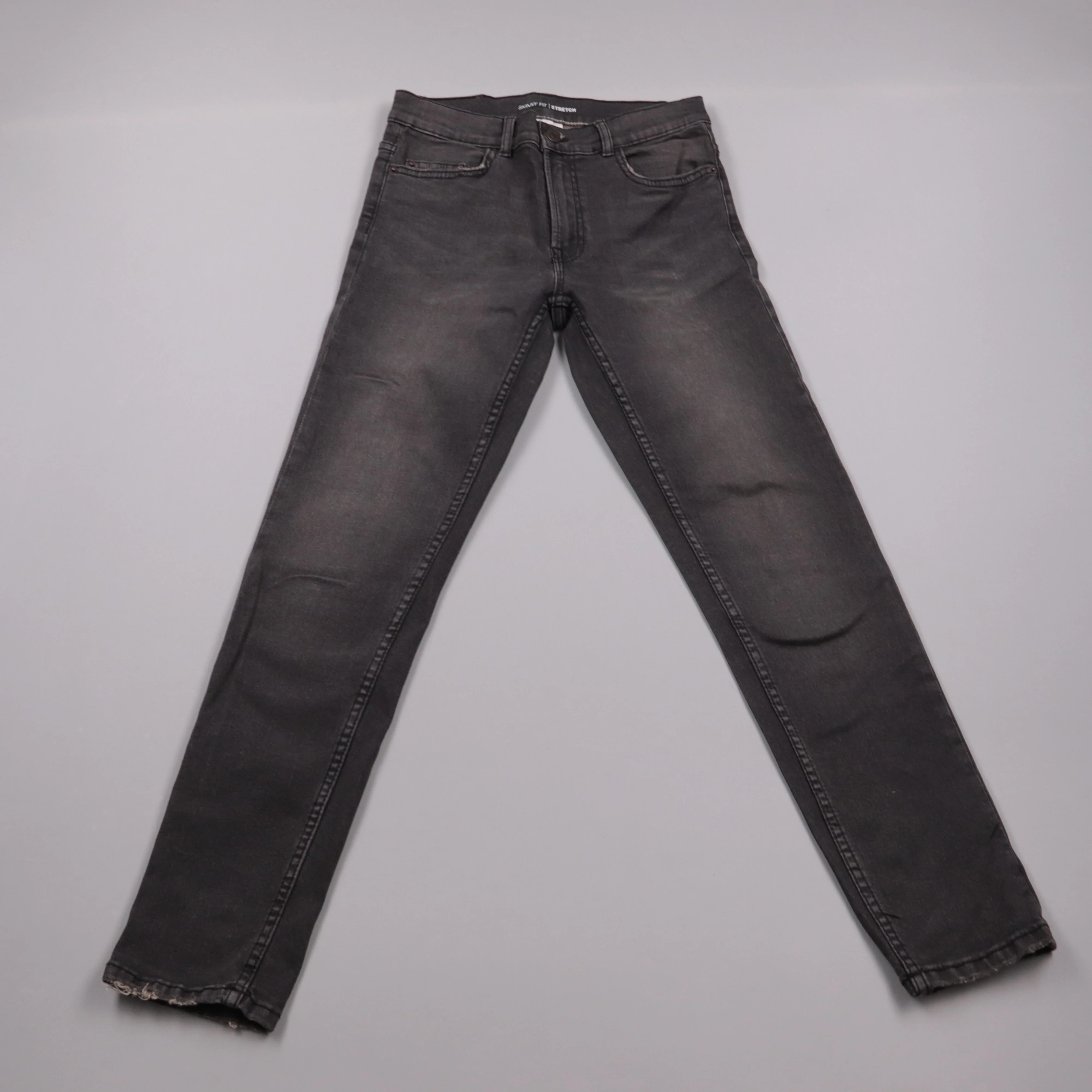 Мужские джинсы Zara Skinny Fit из тёмно-серого денима со стрейчем. Подойдут для повседневной носки и городских образов в любой сезон. Эластан в составе даёт комфортную посадку и не сковывает движения.