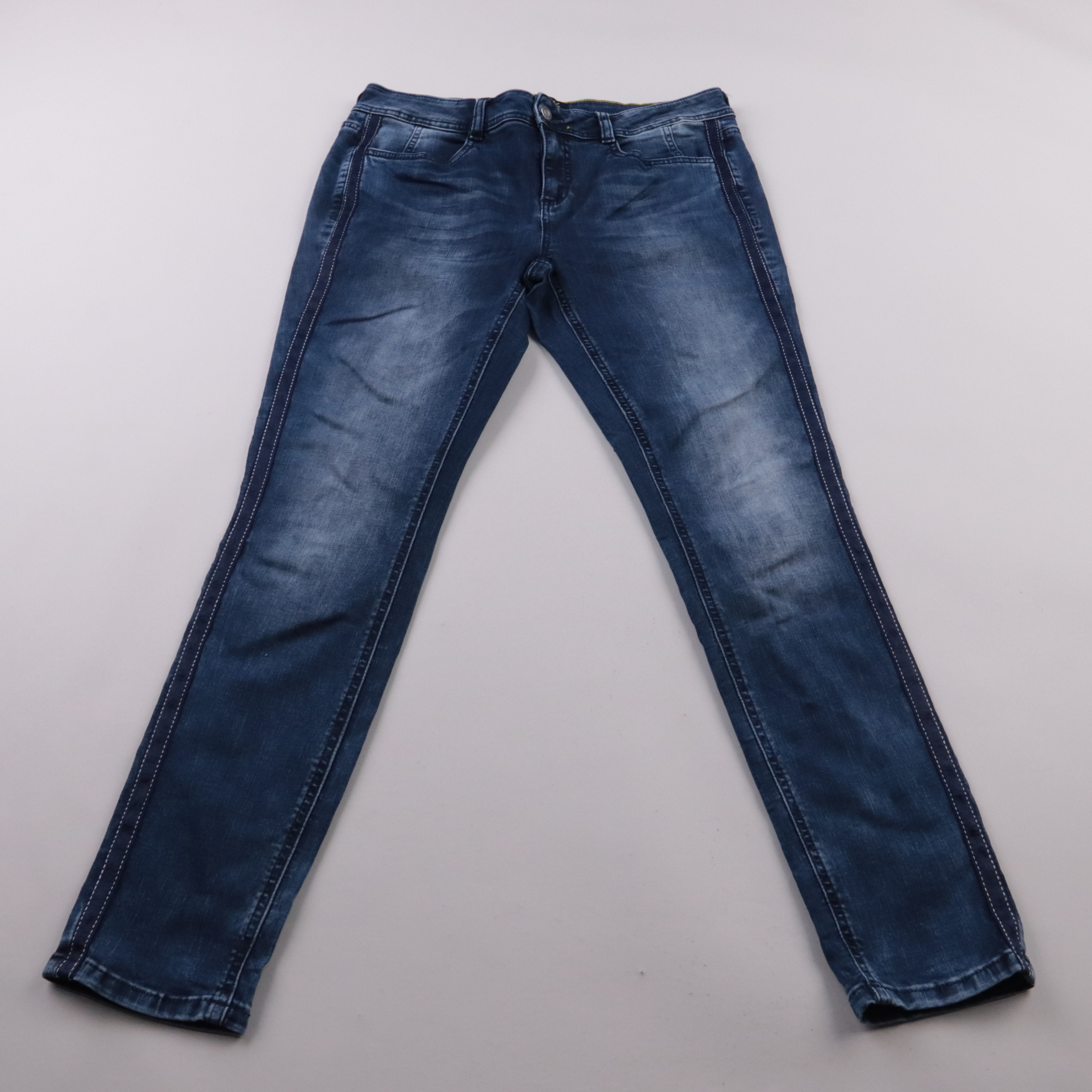 Женские джинсы Street One York в синем дениме с лёгкими высветлениями и контрастной отстрочкой. Подойдут на каждый день и для городских образов с кедами или ботинками. Практичны в носке и легко сочетаются с базовыми вещами.