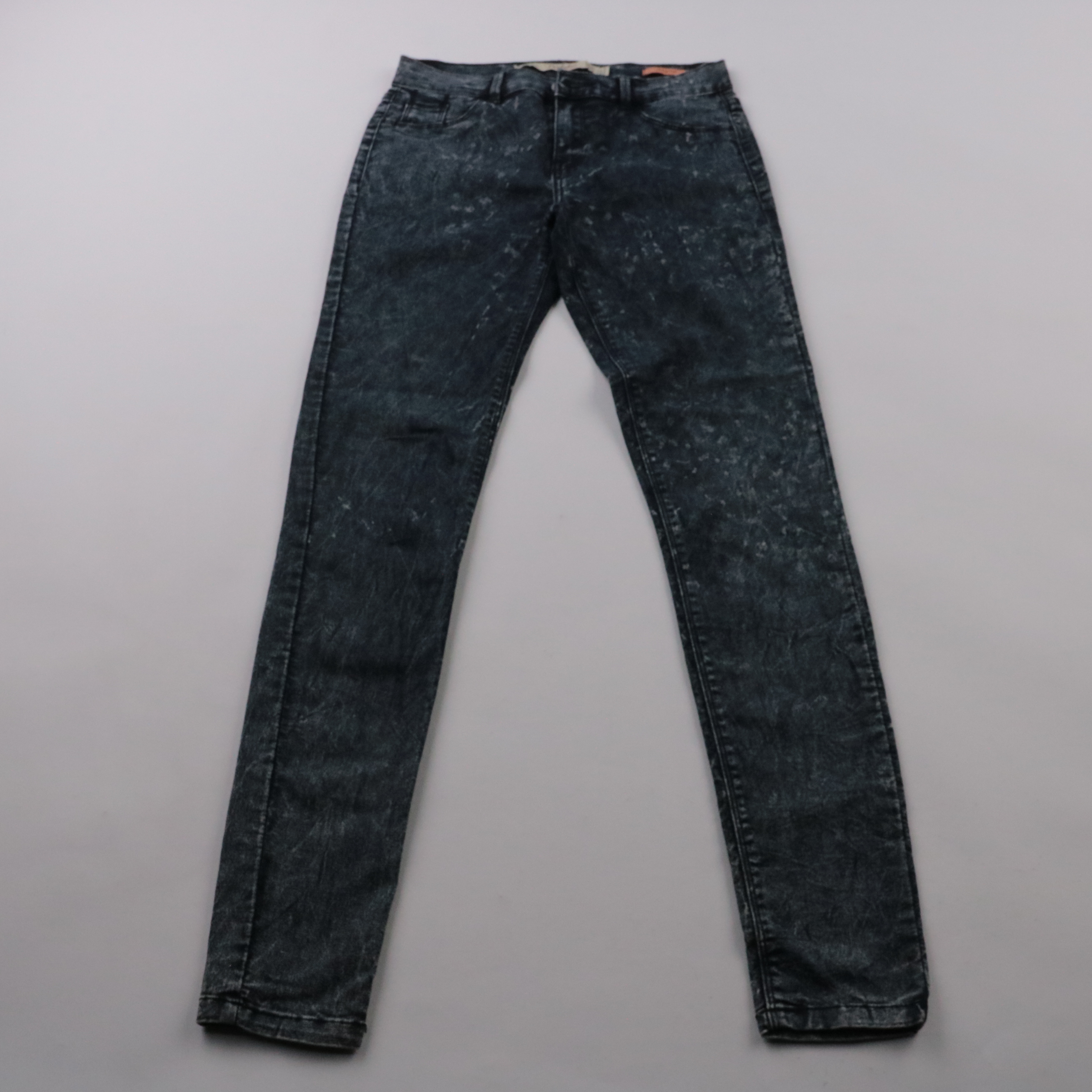 Женские джинсы Zara Trafaluc из тёмно-синего денима с лёгким эффектом варки. Подойдут на каждый день и для casual-образов с кедами или ботинками. Плотный материал хорошо держит форму и не требует сложного ухода.