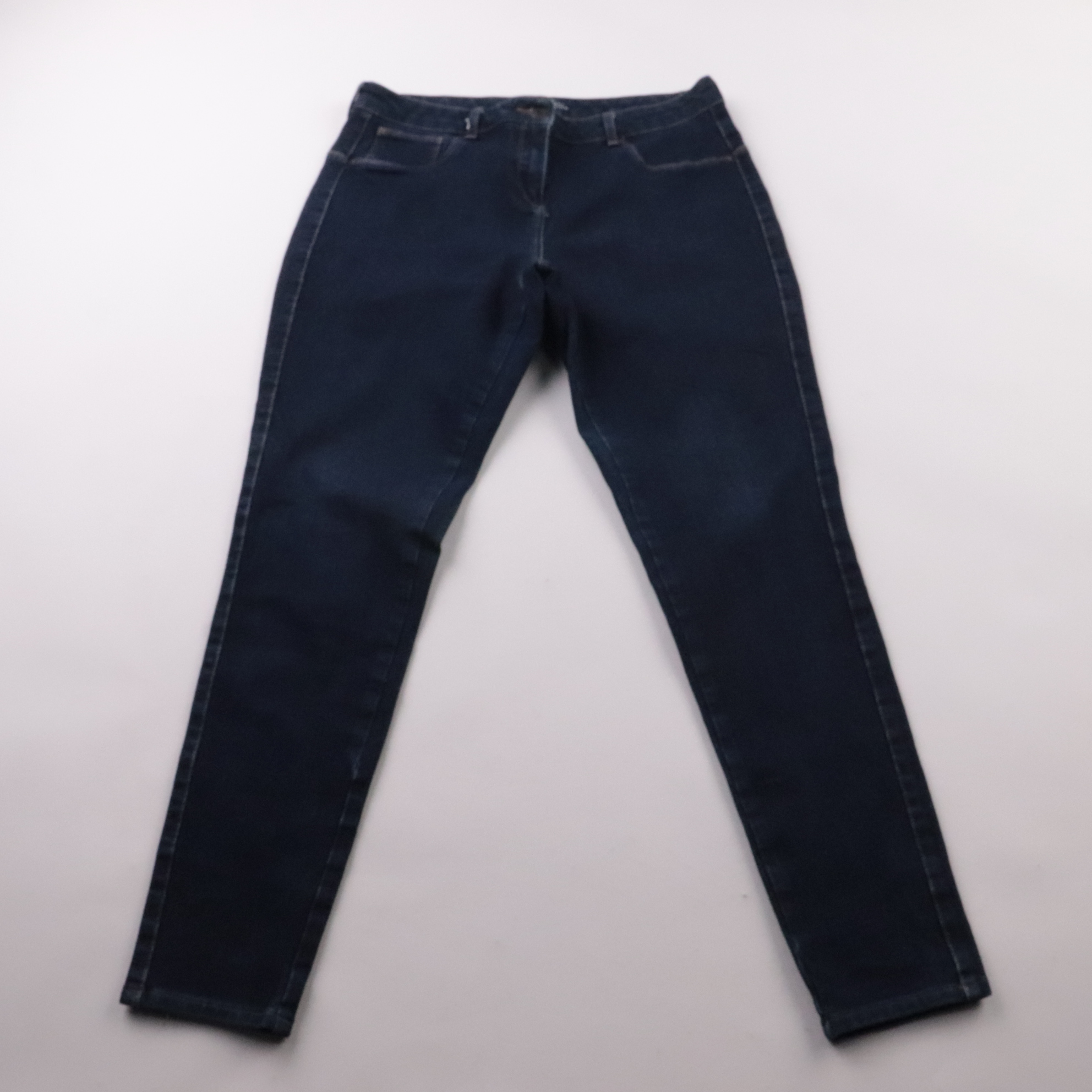 Женские тёмно-синие джинсы Next из плотного денима со стрейчем, прямого кроя. Подойдут на каждый день и для офисных образов с рубашкой или жакетом. Материал хорошо держит форму и комфортно садится по фигуре.