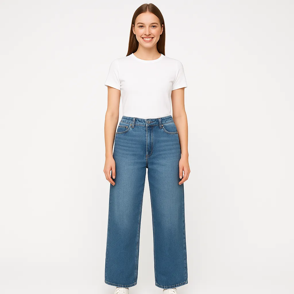 Женские джинсы George Fashion Fit из плотного голубого денима, прямой/слегка широкий крой. Подойдут для повседневных образов с кедами или ботинками в любое время года. Натуральный хлопок хорошо держит форму и комфортен в носке.