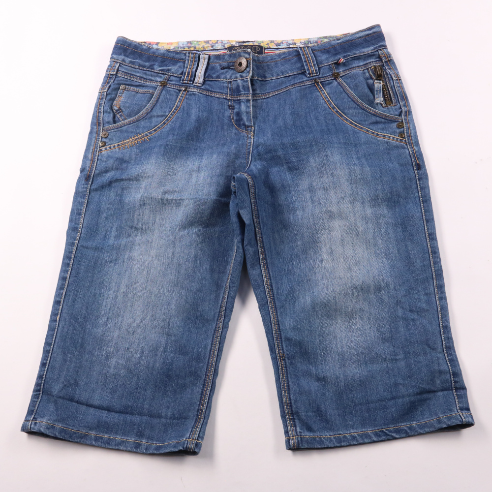 Женские джинсы-капри George из денима синего цвета с лёгкими потертостями. Подойдут для повседневных летних образов и прогулок, хорошо сочетаются с футболками и кедами. Практичны за счёт прочной ткани и удобных карманов.