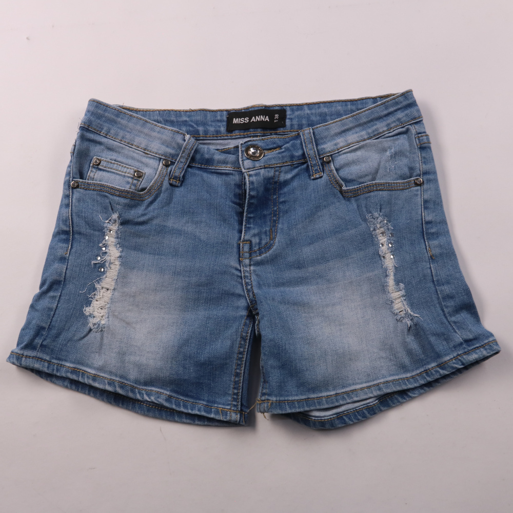 Джинсовые шорты Miss Anna из хлопкового денима, светло-синие с выбеленным эффектом и декоративными потертостями. Подойдут для летних прогулок и отпуска, легко сочетаются с футболками и топами. Плотный материал хорошо держит форму и удобен в носке.