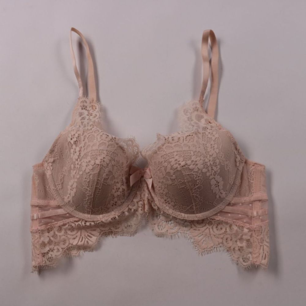 Женский кружевной бюстгальтер с формованными чашками и косточками, цвет пудрово-розовый. Подойдёт для повседневной носки и под облегающую одежду, благодаря мягким регулируемым бретелям и застёжке на спине. Плотная посадка хорошо поддерживает грудь и де...