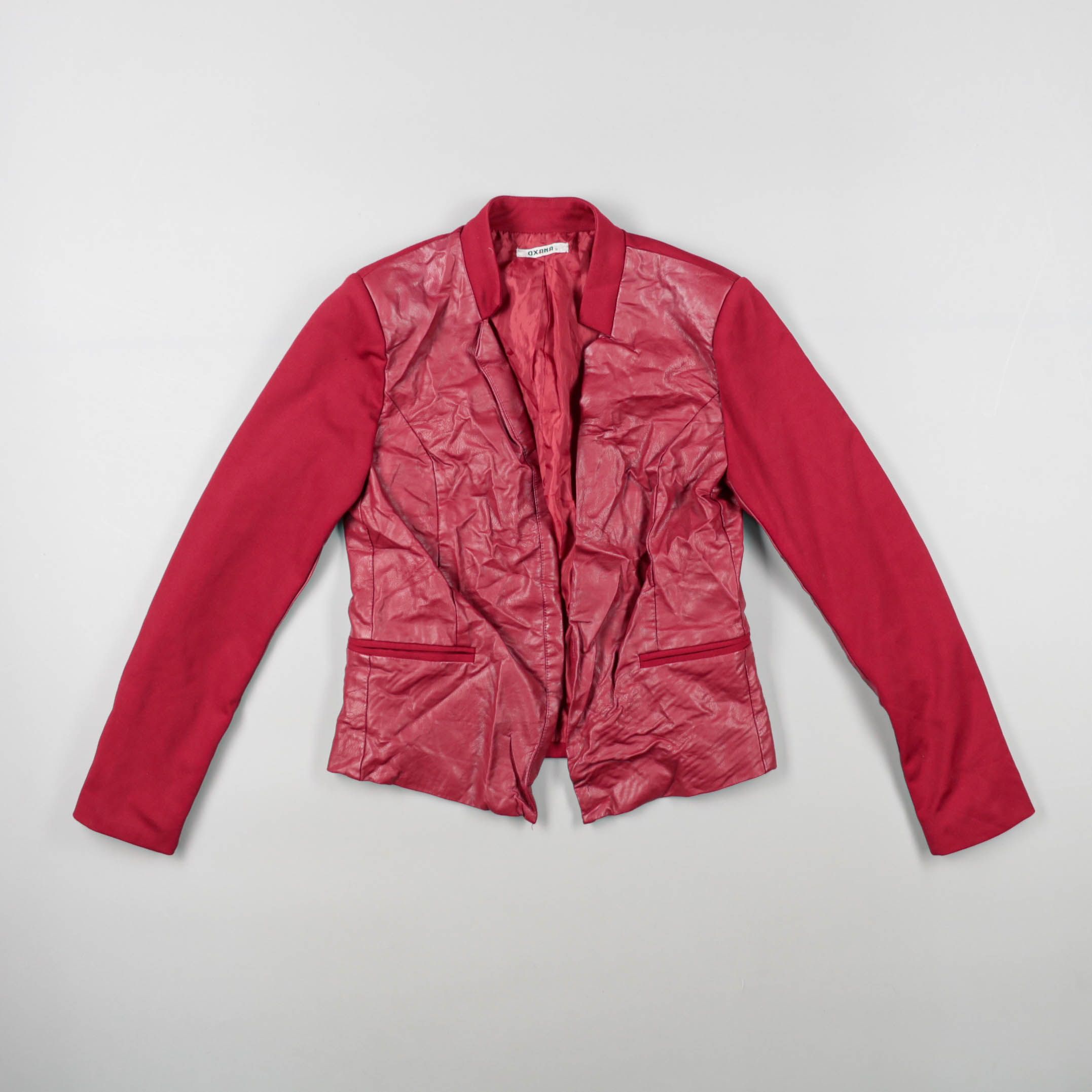 Женский пиджак OXMO в красном цвете с комбинированными вставками под кожу и лаконичными карманами. Подойдёт для повседневных образов и вечерних выходов, хорошо смотрится с джинсами или платьем. Практичный плюс — плотный материал держит форму и делает с...
