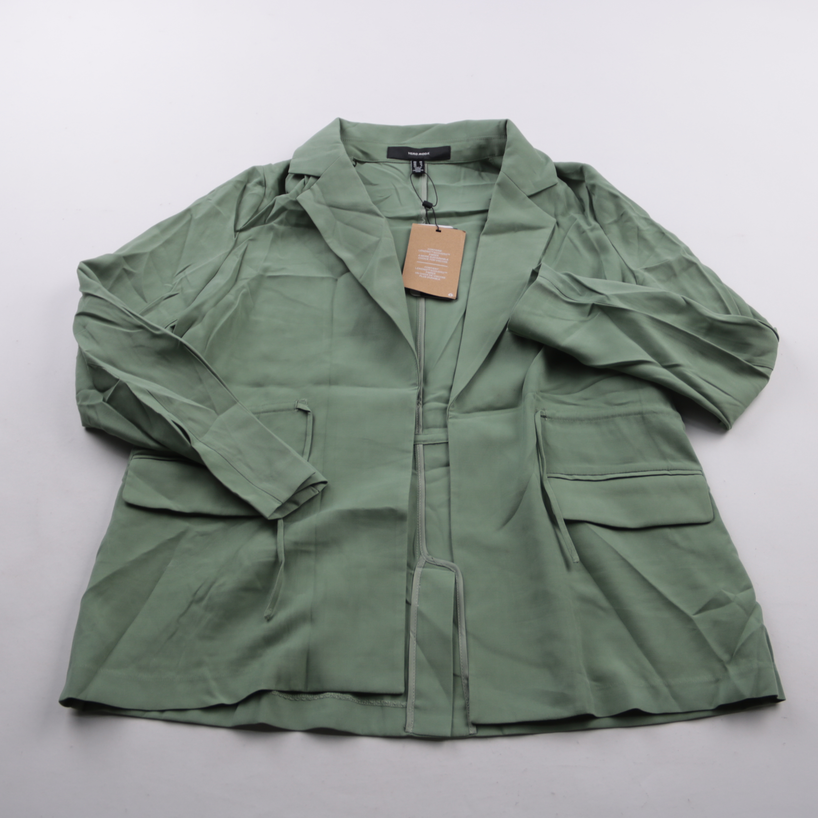 Пиджак Vero Moda в оттенке Hedge Green, лёгкий и мягко драпируется за счёт вискозы. Подойдёт для офиса и повседневных образов с джинсами или брюками в демисезон. Практичная деталь — пояс-кулиска на талии, можно регулировать посадку.