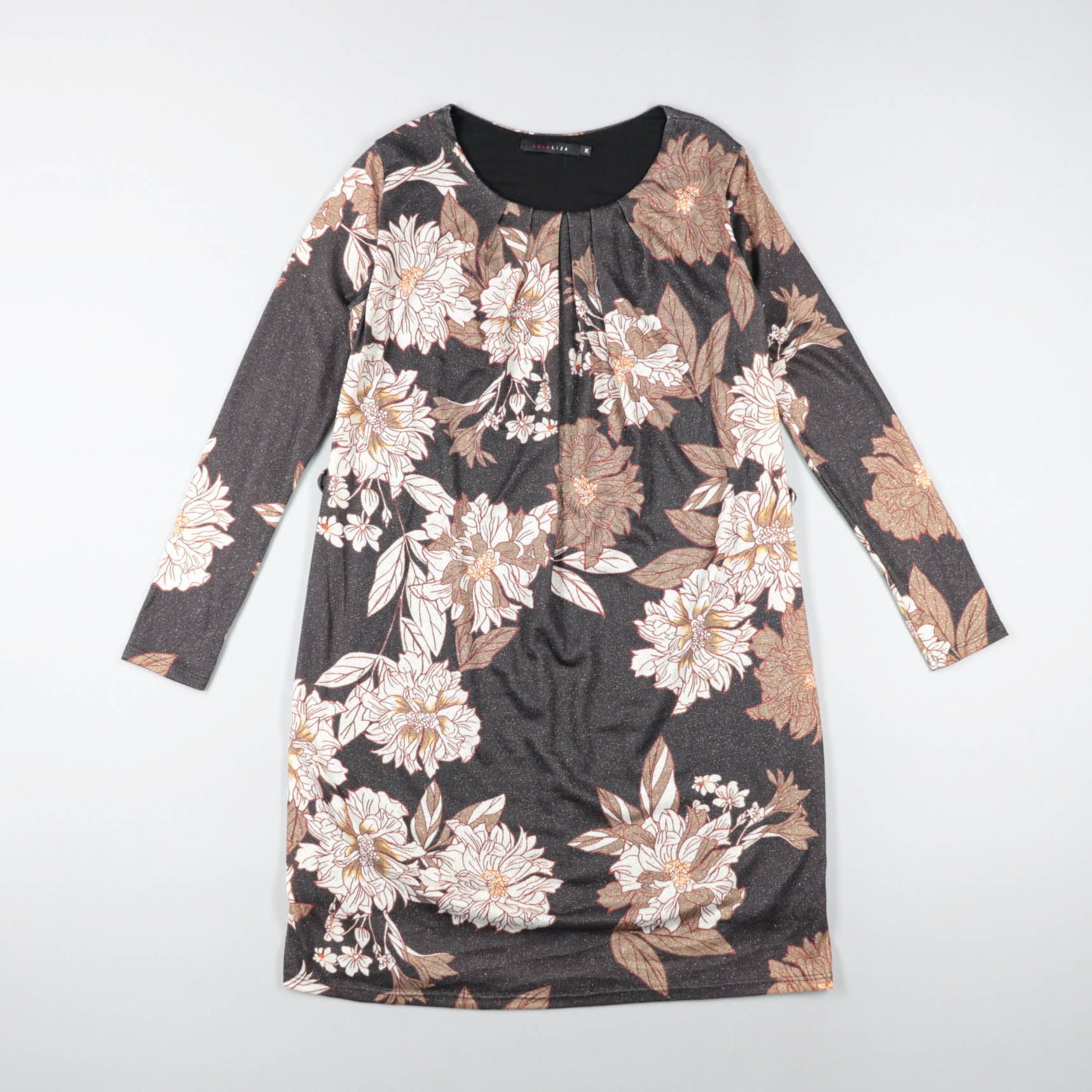 Повседневное платье Zabaione прямого кроя с длинным рукавом и цветочным принтом на тёмном фоне. Подойдёт для офиса и прогулок в прохладную погоду, легко сочетается с ботинками или кедами. Мягкий трикотаж комфортно сидит и не сковывает движения.