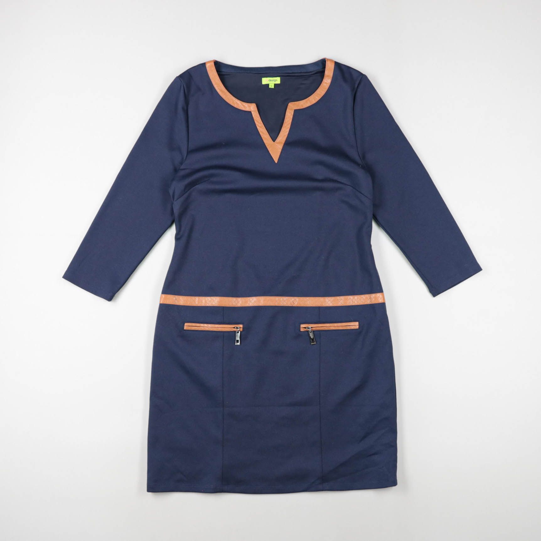 Женское повседневное платье тёмно-синего цвета с контрастной отделкой по горловине и линии талии, рукав 3/4. Подойдёт для офиса и на каждый день, лаконичный крой легко сочетается с жакетом и классической обувью. Практичная деталь — декоративные карманы...