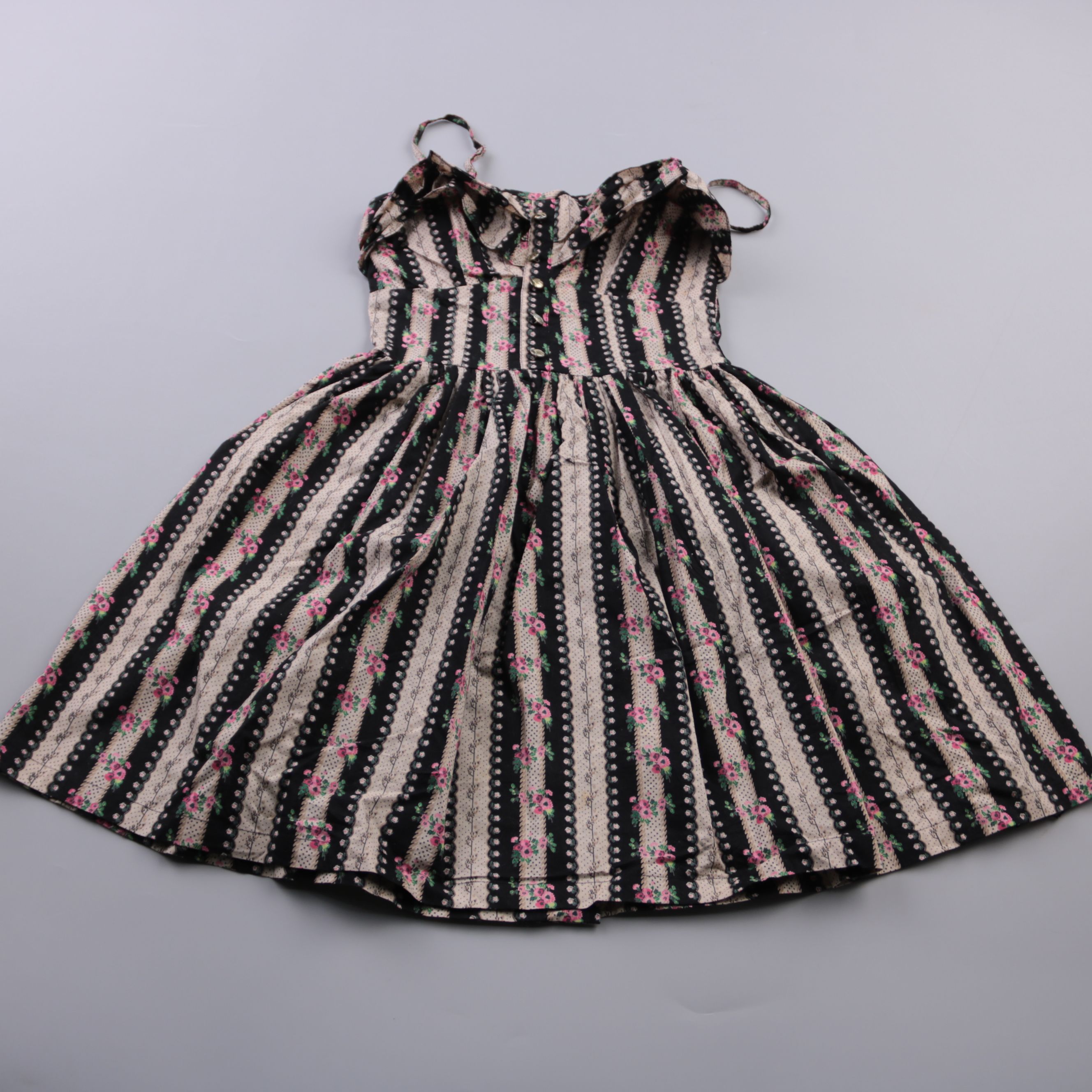 Летнее платье Atmosphere на тонких бретелях, с расклешённой юбкой и мелким цветочным принтом в полоску. Подойдёт для прогулок и повседневных выходов в тёплую погоду. Натуральный хлопок хорошо пропускает воздух и комфортен в жару.