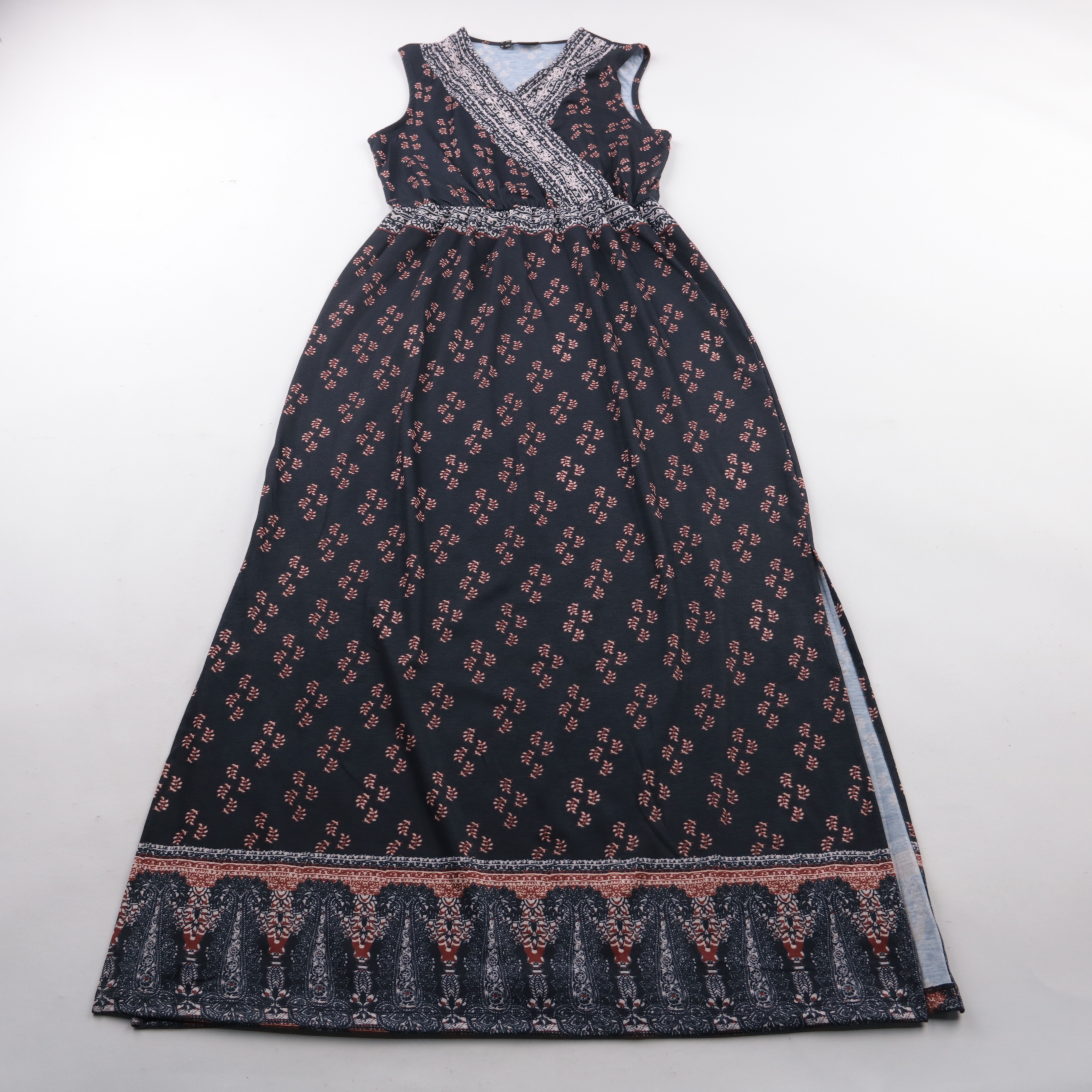 Повседневное платье Bodyflirt без рукавов с запахом на груди и орнаментальным принтом в тёмно-синем цвете. Подойдёт для прогулок и отдыха в тёплую погоду, хорошо смотрится с сандалиями или кедами. Лёгкая ткань с добавлением эластана немного тянется и к...