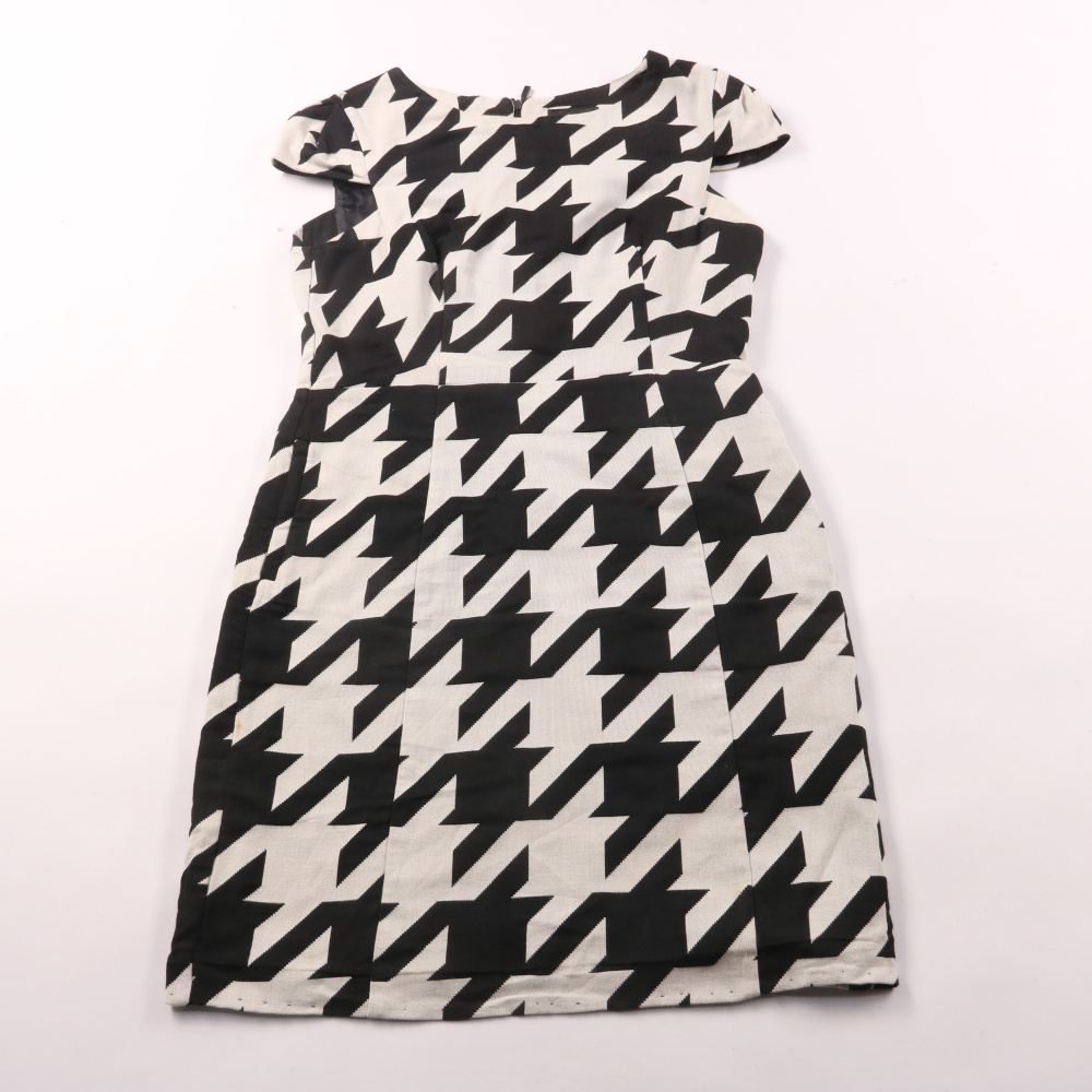Повседневное платье Next с коротким рукавом и контрастным принтом «гусиная лапка». Подойдёт для офиса и городских выходов, хорошо смотрится с жакетом или пальто. Плотная ткань держит форму, а подкладка делает посадку комфортнее.