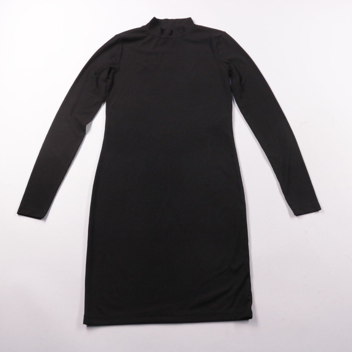 Платье Jacqueline de Yong чёрного цвета, облегающего силуэта с длинным рукавом и воротником-стойкой. Подойдёт для повседневных образов и офиса в прохладную погоду. Трикотажная фактура хорошо тянется и комфортно садится по фигуре.