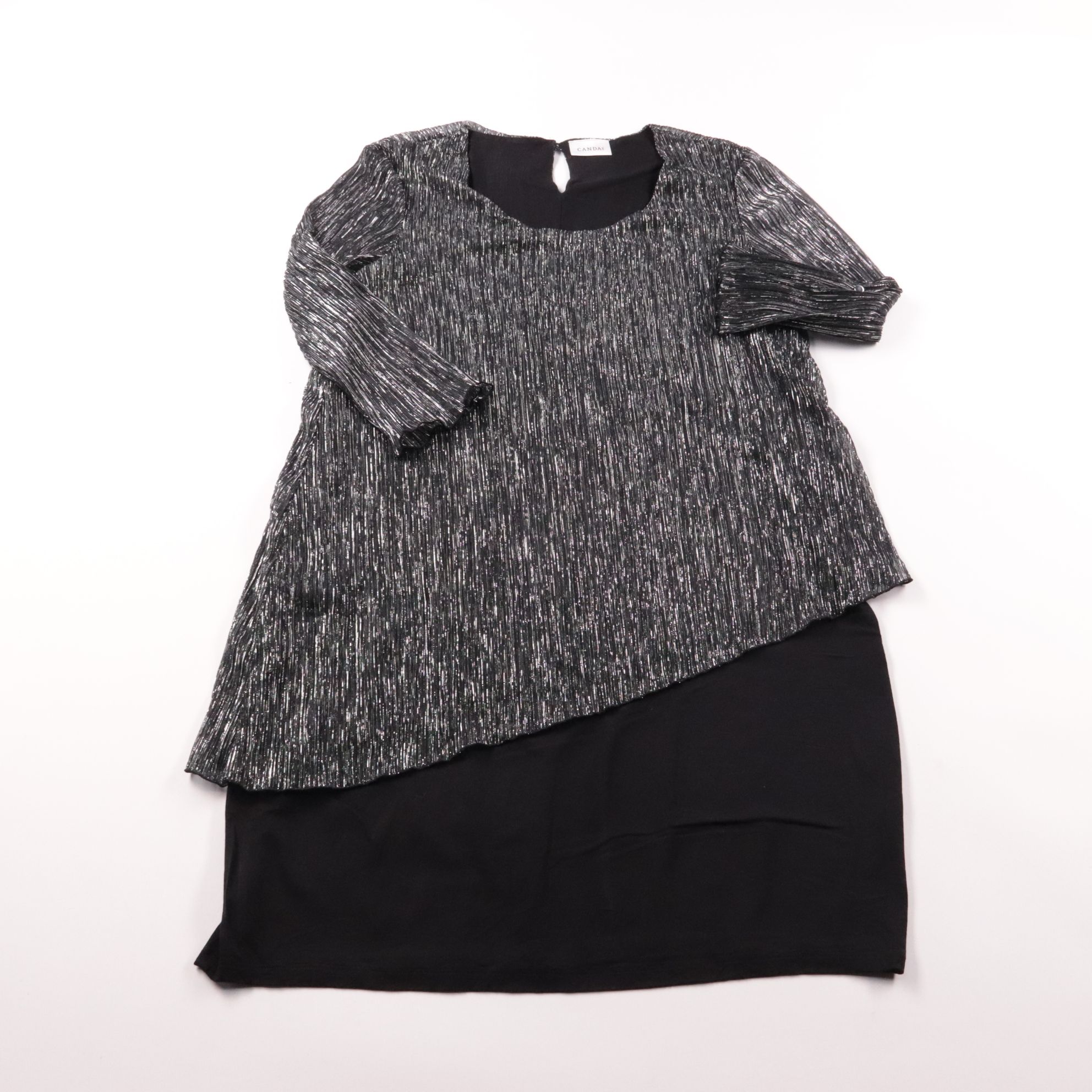 Женская блузка Canda в чёрном цвете с меланжевой фактурой и асимметричным низом. Подойдёт для офиса и вечерних выходов, хорошо сочетается с однотонными брюками или юбкой. Практичный плюс — ткань почти не мнётся и выглядит аккуратно в течение дня.