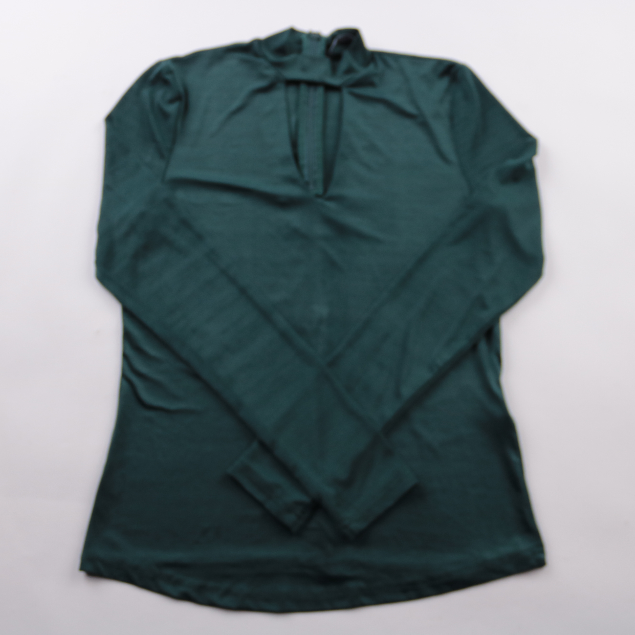 Блузка Vero Moda тёмно-зелёного цвета с длинным рукавом и небольшим разрезом спереди. Подойдёт для офиса и на каждый день, легко сочетается с брюками или юбкой. Практичный плюс — лёгкая ткань комфортна в помещении и под пиджаком.