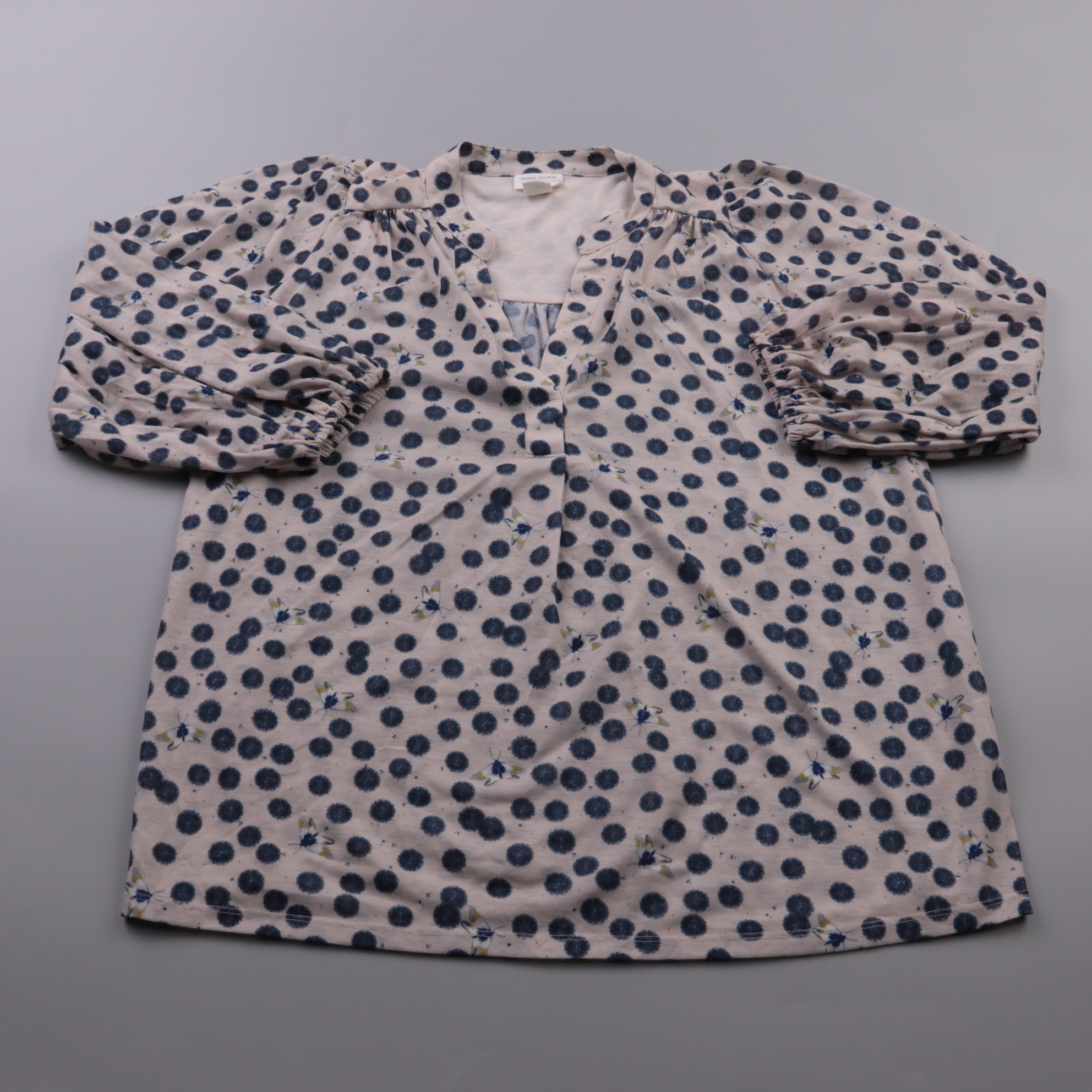 Блузка H&M из лёгкого полиэстера с принтом в горох и небольшими цветочными акцентами, с V-образным вырезом и рукавами на резинке. Подойдёт для офиса и повседневных образов, легко сочетается с джинсами и юбками. Ткань почти не мнётся и быстро сохнет пос...