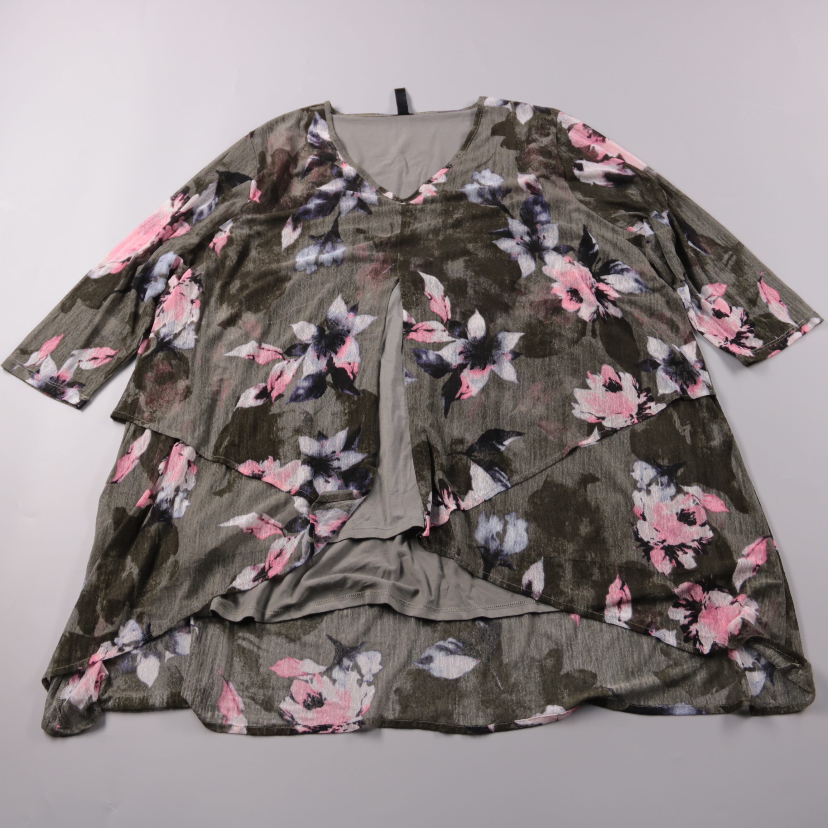 Женская блузка Ts с цветочным принтом и V-образным вырезом, выполнена с эффектом многослойности. Подойдёт для повседневных образов и офиса в сочетании с брюками или джинсами. Материал тянется и почти не мнётся, поэтому удобна на весь день.