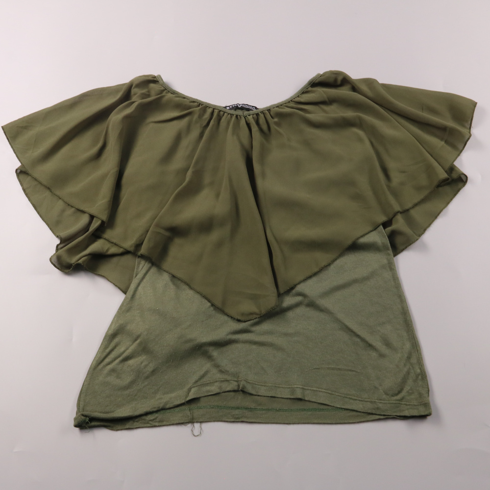 Блузка Styleboom цвета хаки с широкими воланами и открытыми плечами. Подойдёт для летних прогулок и отпуска, легко сочетается с джинсами или юбкой. Свободный крой не сковывает движения и комфортно садится по фигуре.
