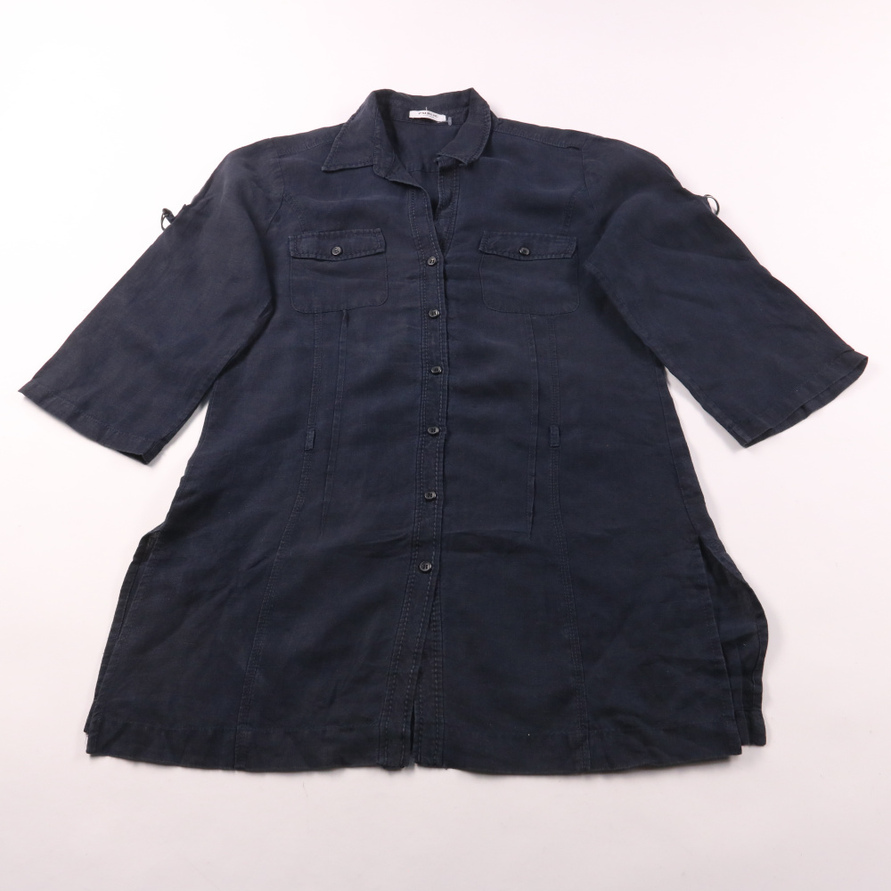 Льняная рубашка-туника Public в тёмно-синем цвете, с застёжкой на пуговицы и накладными карманами на груди. Подойдёт для лета и отдыха: можно носить как удлинённую рубашку или лёгкое платье поверх шорт/легинсов. Натуральный лён хорошо дышит и комфортен...