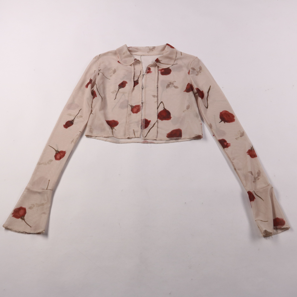 Женская укороченная блузка из сетчатого материала с цветочным принтом. Подойдёт для образов в стиле casual и на выход, хорошо смотрится с высокими джинсами или юбкой. Лёгкая ткань почти не мнётся и быстро сохнет.