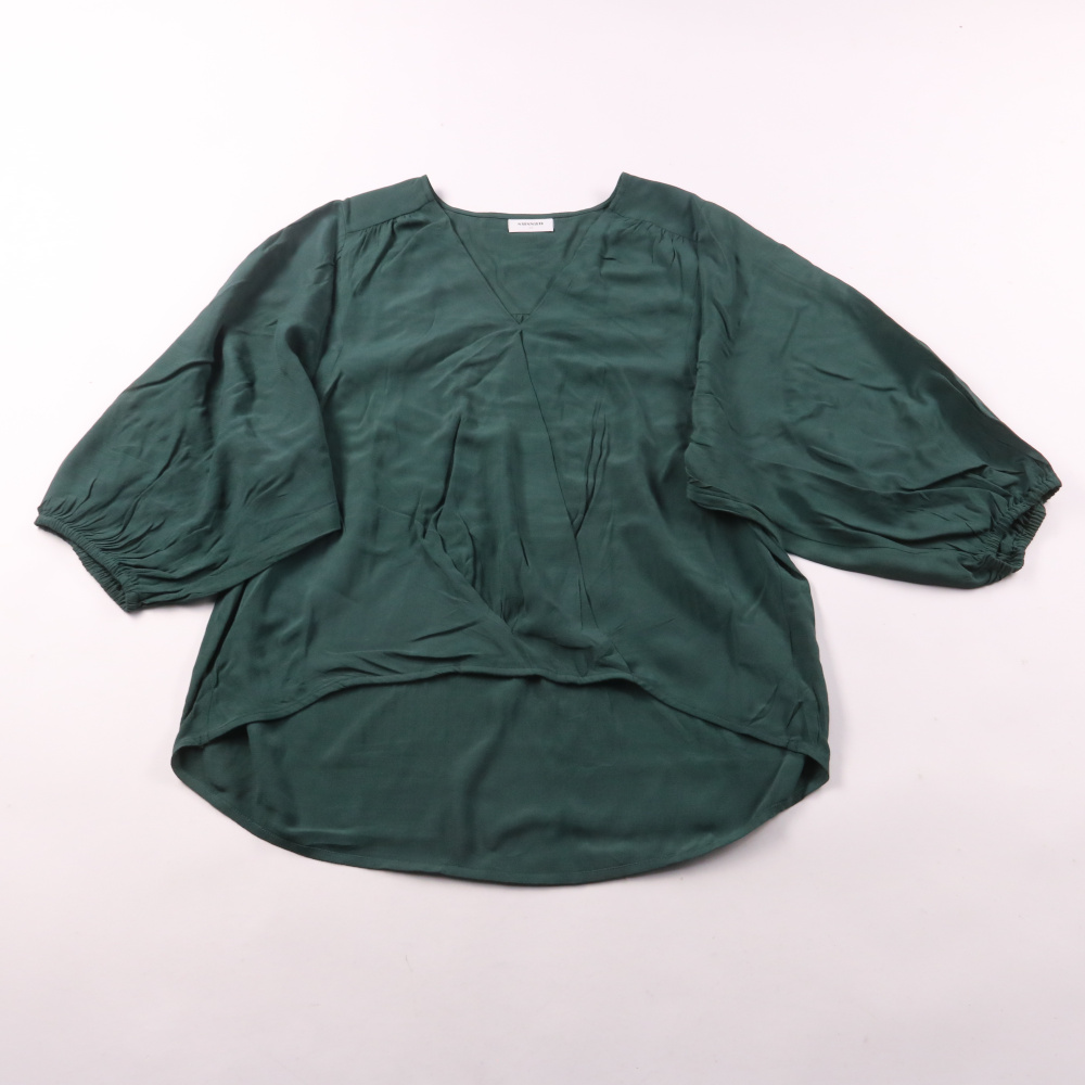 Женская блузка Sussan из 100% вискозы, тёмно-зелёного цвета, с V-образным вырезом и объёмными рукавами на резинке. Подойдёт для офиса и повседневных образов в любой сезон, хорошо сочетается с джинсами и юбками. Лёгкая ткань приятна к телу и комфортно д...