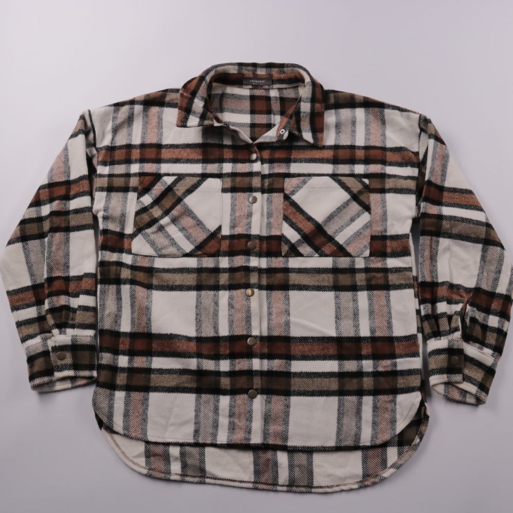 Фланелевая рубашка Primark в крупную клетку, на кнопках и с двумя нагрудными карманами. Подойдёт для повседневных образов и как верхний слой поверх футболки в прохладную погоду. Практичный мягкий материал и удобная длина со скруглённым низом.