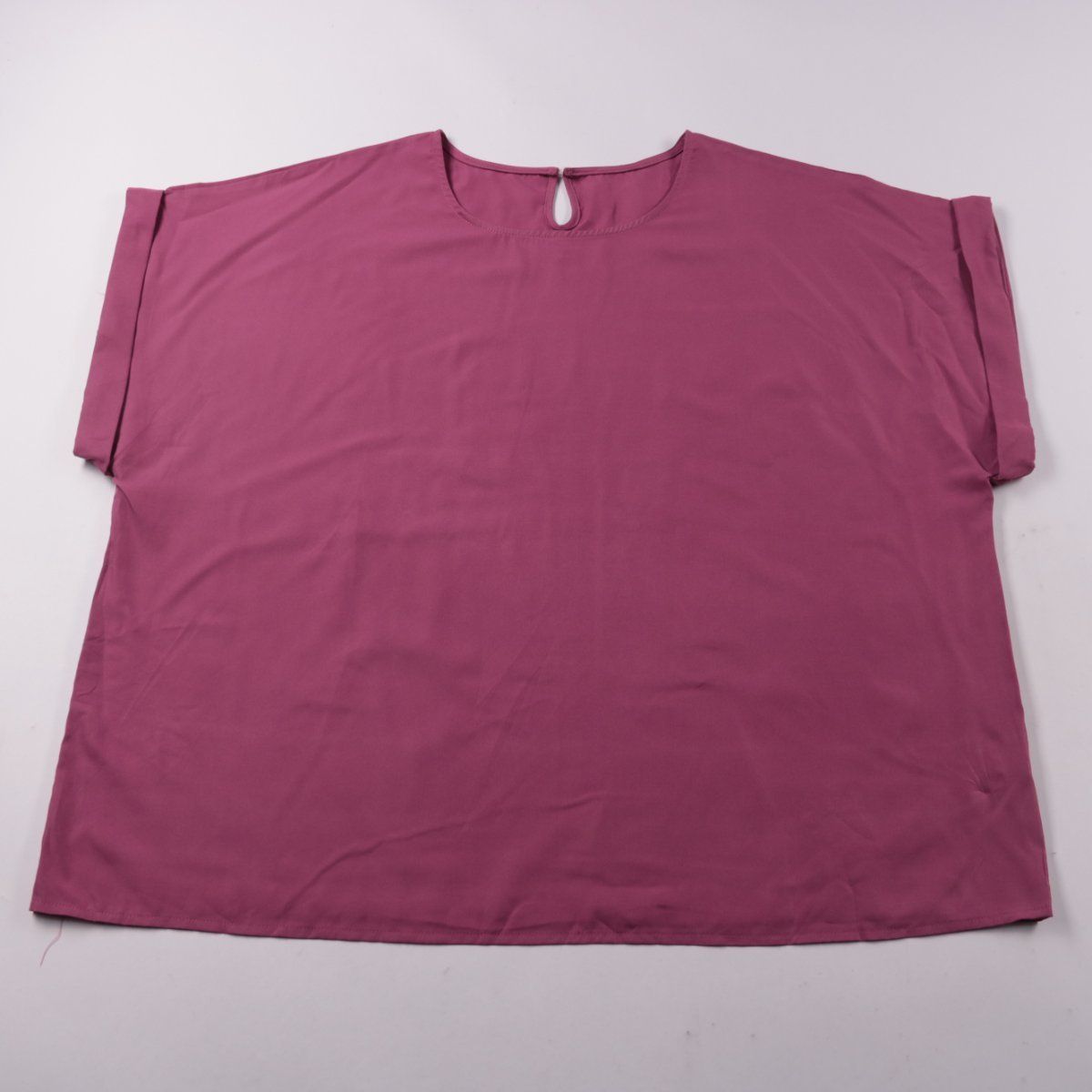 Блузка SHEIN Curve свободного кроя в оттенке фуксия, с коротким рукавом и вырезом-каплей на спинке. Подойдёт для повседневных образов и офиса в сочетании с брюками или юбкой. Ткань лёгкая и почти не мнётся, удобно брать с собой в поездки.