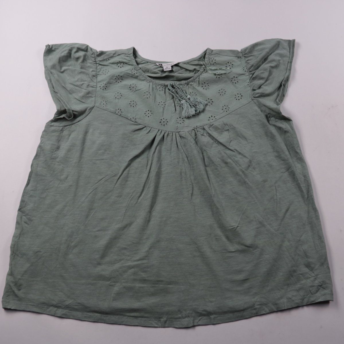 Блузка Rockmans оливково-зелёного цвета с вышивкой на кокетке и рукавами-крылышками. Подойдёт для тёплой погоды и повседневных образов, хорошо смотрится с джинсами или шортами. Хлопковая ткань мягкая и дышащая.