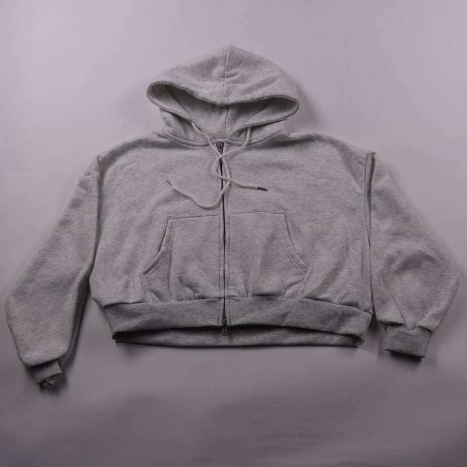 Укороченная толстовка на молнии Shein в сером меланже, с капюшоном, шнурком и карманом-кенгуру. Подойдёт для прогулок и повседневных образов в прохладную погоду, легко сочетается с джинсами и спортивными брюками. Мягкий материал прост в уходе и быстро ...