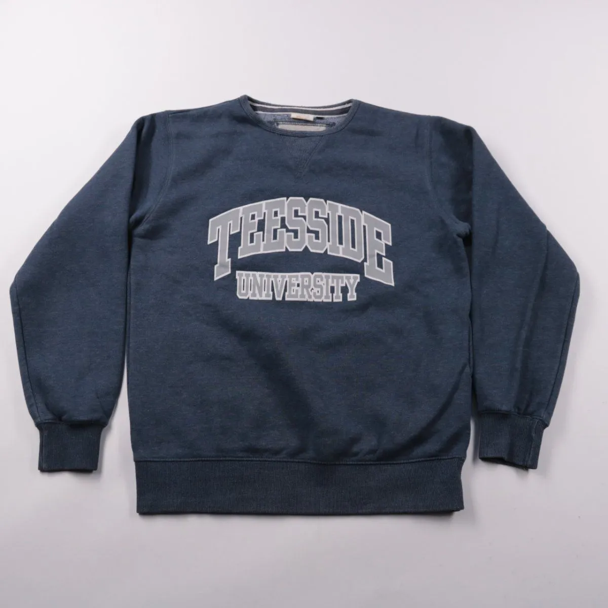 Свитшот Teesside University в темно-синем цвете с крупным принтом на груди. Подойдет для повседневных образов и учебы в прохладную погоду, носится как самостоятельный верх или слоем. Мягкая изнанка и манжеты/низ в рубчик помогают держать тепло и форму.