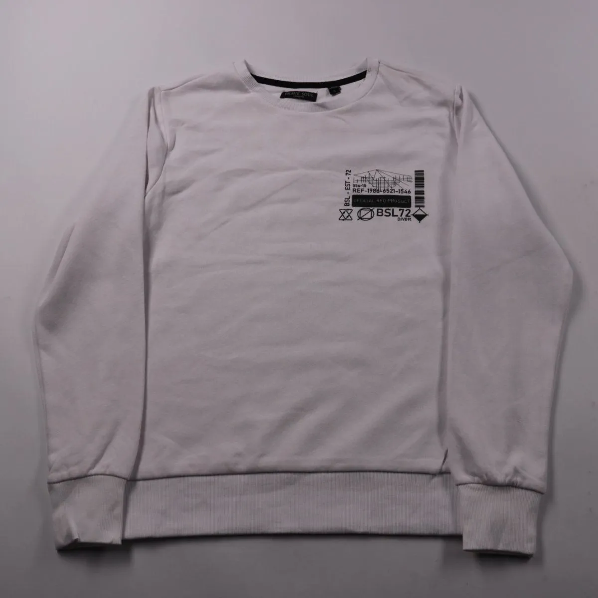 Свитшот Brave Soul белого цвета с круглым вырезом и небольшим принтом на груди. Подойдёт для повседневных образов и прогулок в прохладную погоду. Практичный плюс — мягкий хлопковый материал с добавлением полиэстера и удобные трикотажные манжеты/низ.