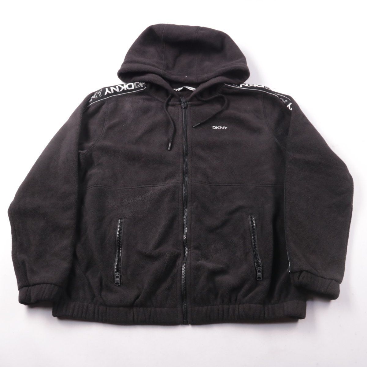 Толстовка DKNY Sport на молнии с капюшоном и фирменной лентой на плечах. Подойдёт для прогулок и повседневной носки в прохладную погоду. Практична тем, что имеет застёжку-молнию и карманы на молнии.