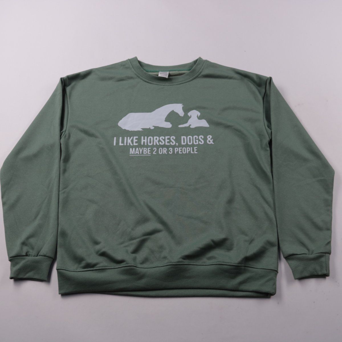 Свитшот зелёного цвета с круглым вырезом и принтом на груди, без капюшона. Подойдёт для повседневной носки и прогулок, можно сочетать с джинсами и спортивными брюками. Материал 100% полиэстер — легко стирается и быстро сохнет.
