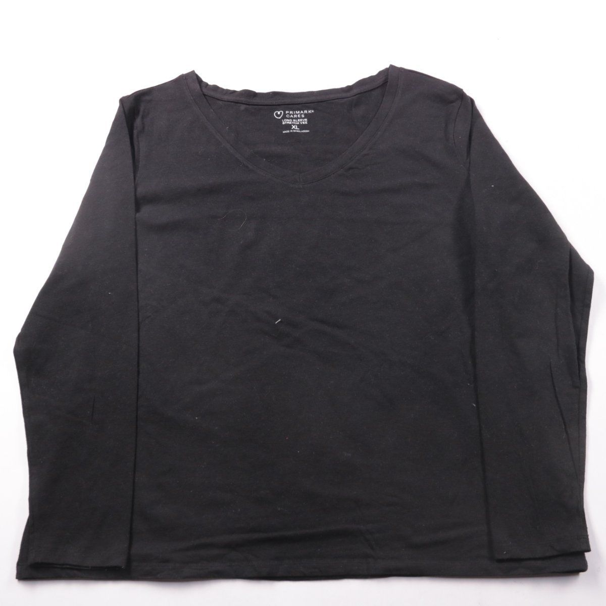 Женский лонгслив Primark Cares с V-образным вырезом, чёрного цвета. Подойдёт для повседневной носки и как базовый слой под жакет или куртку. Хлопковый стрейч-материал тянется и комфортно садится по фигуре.