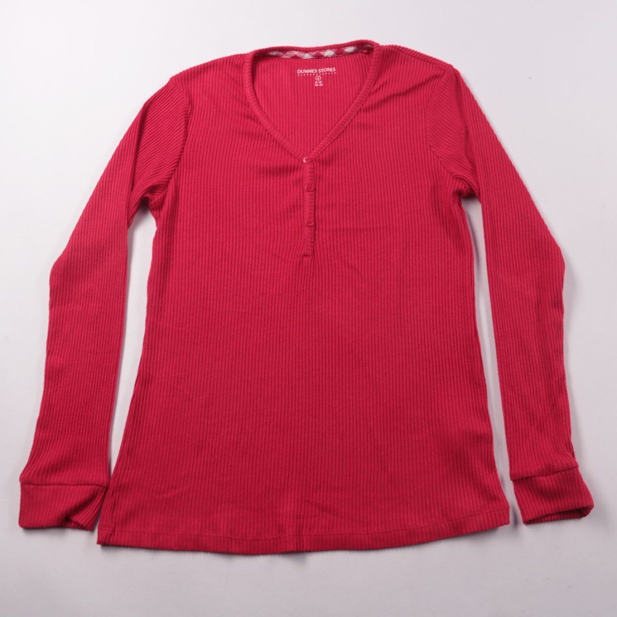 Женский лонгслив Dunnes Stores красного цвета из фактурного трикотажа в рубчик, с V-вырезом и планкой на пуговицах. Подойдёт для повседневной носки и как базовый слой в прохладную погоду. Материал с эластаном хорошо тянется и комфортно садится по фигуре.
