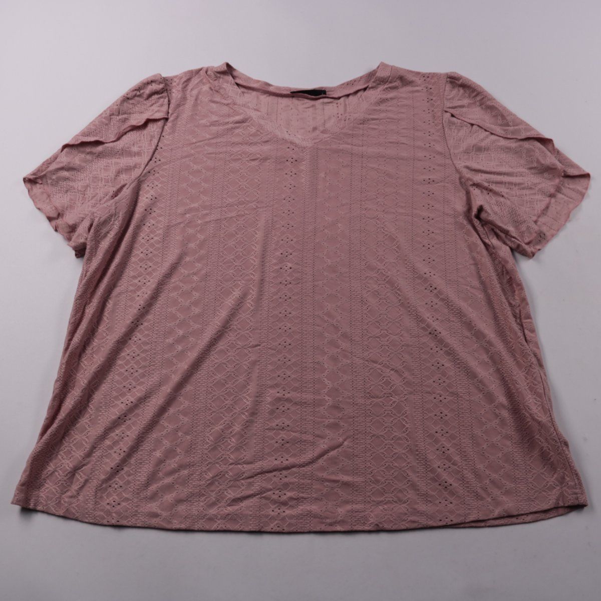 Футболка SHEIN CURVE розового цвета с V-образным вырезом и фактурным узором. Подойдёт для лета и тёплой погоды, можно носить с джинсами или юбкой. Материал тянется и комфортно садится по фигуре.
