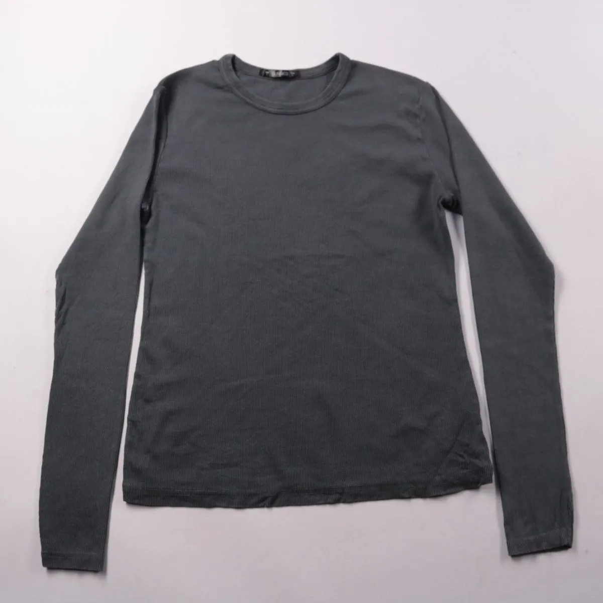 Лонгслив Dunnes в рубчик, цвет charcoal (тёмно-серый), с круглым вырезом и длинным рукавом. Подойдёт для повседневной носки и как базовый слой в прохладную погоду. Эластичная ткань комфортно тянется и хорошо садится по фигуре.