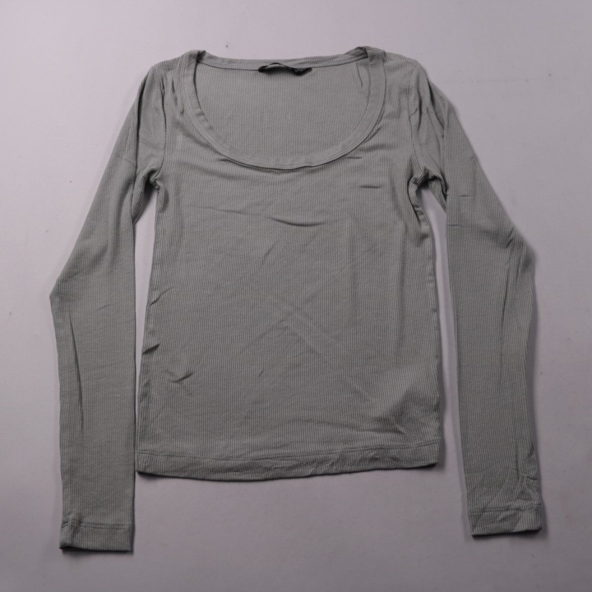 Женский лонгслив Dunnes в рубчик, цвет Light Grey, с глубоким округлым вырезом. Подойдёт для повседневной носки и как базовый слой в прохладную погоду. Ткань на основе вискозы с эластаном хорошо тянется и комфортно садится по фигуре.