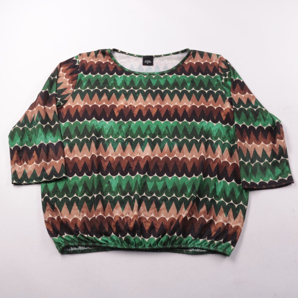 Женский лонгслив FOS Amsterdam с круглым вырезом и принтом в зелёно-коричневых тонах. Подойдёт для повседневных образов, можно носить с джинсами или однотонной юбкой. Ткань эластичная, низ на резинке — удобно сидит и не задирается.