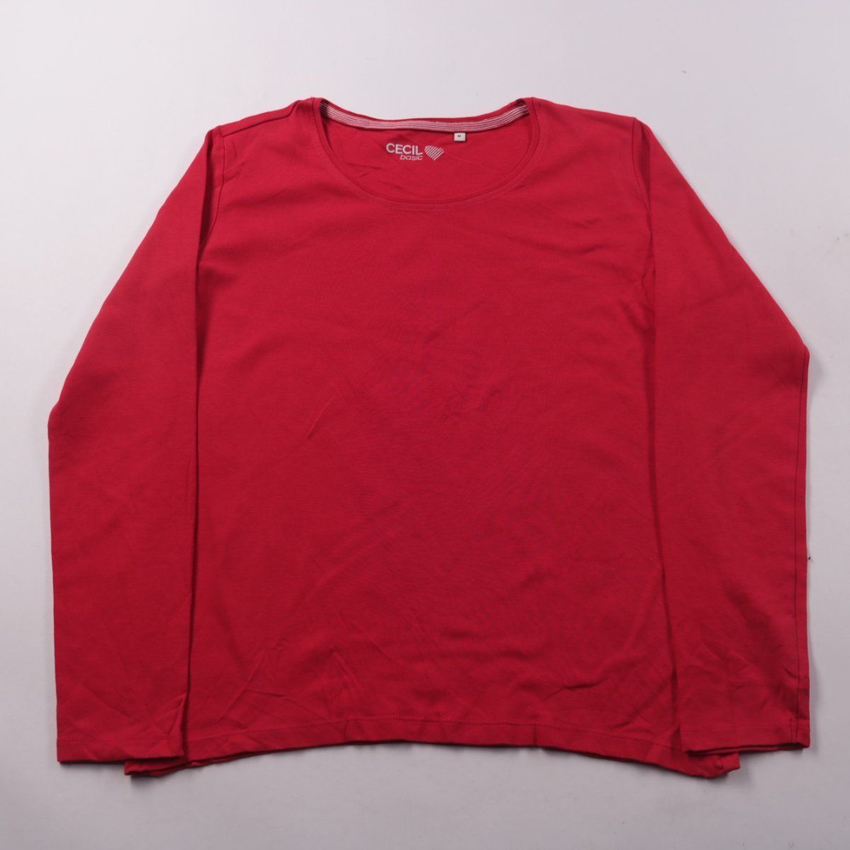 Женский лонгслив CECIL basic красного цвета с круглым вырезом. Подойдёт для повседневной носки и как базовый слой под жакет или кардиган. Тонкий трикотаж удобно комбинировать и он не сковывает движения.
