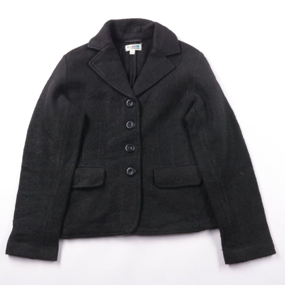 Женское пальто Blue Motion из 100% шерсти, укороченная модель с отложным воротником и застёжкой на пуговицы. Подойдёт для повседневных образов в прохладную погоду, есть два накладных кармана спереди. Шерсть хорошо держит тепло и выглядит аккуратно.