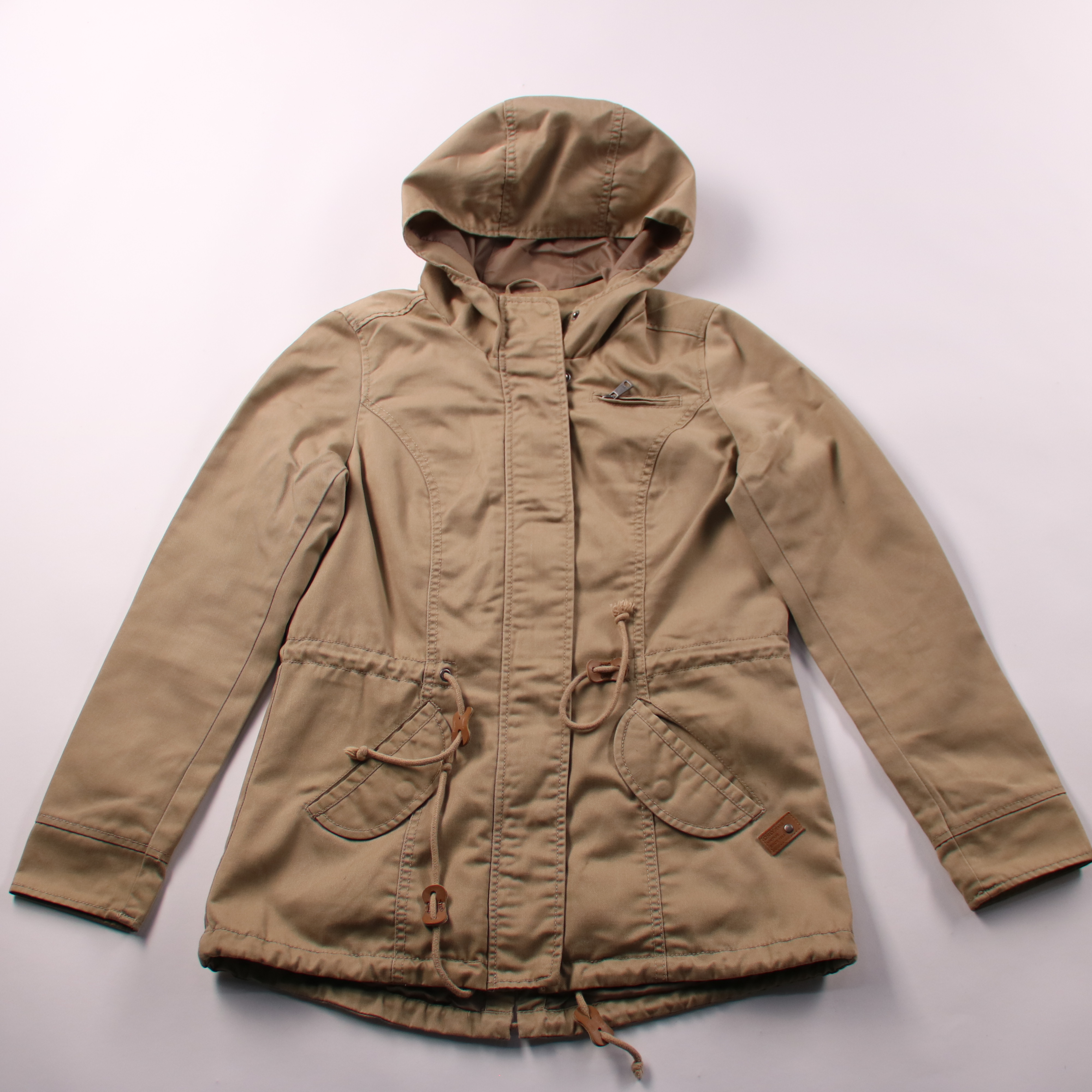 Лёгкая женская куртка Only с капюшоном и кулиской на талии, цвет бежевый. Подойдёт для прохладной весны/осени и повседневных прогулок, хорошо сочетается с джинсами и кедами. Практичный плюс — удобные карманы и застёжка с планкой, которая прикрывает мол...