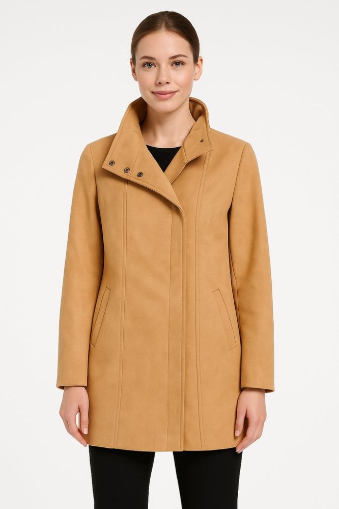 Женское демисезонное пальто прямого кроя в бежево-карамельном оттенке, с высоким воротником и боковыми карманами. Подойдёт для повседневных и офисных образов в прохладную погоду, удобно носить с базовыми вещами. Практичный плюс — универсальный цвет и л...