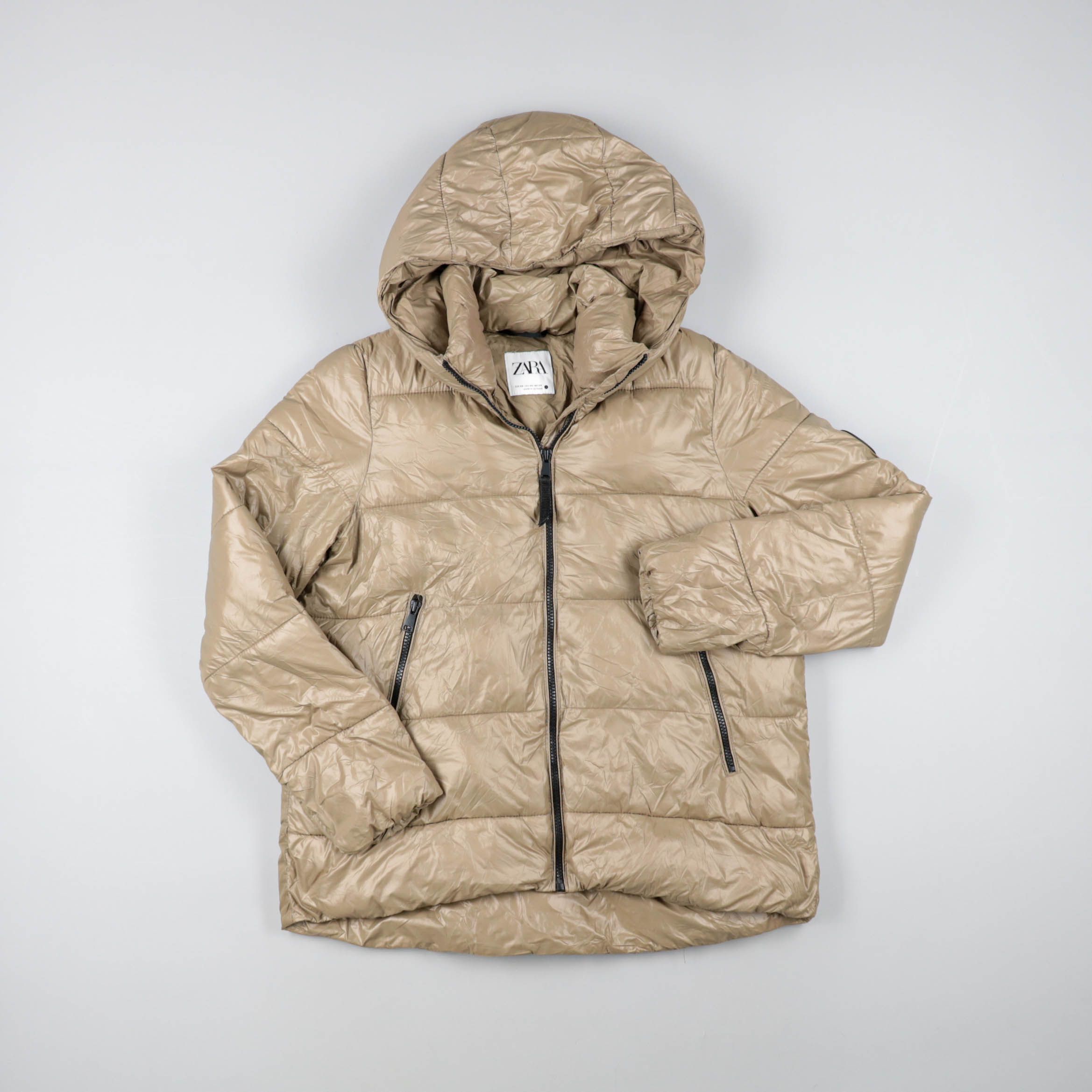 Женская утеплённая куртка Zara с капюшоном, стёганая и на молнии, с карманами на молниях. Подойдёт для зимних прогулок и поездок по городу, когда нужен тёплый верх без лишнего объёма. Практичный плюс — лёгкая и хорошо защищает от ветра за счёт плотной ...