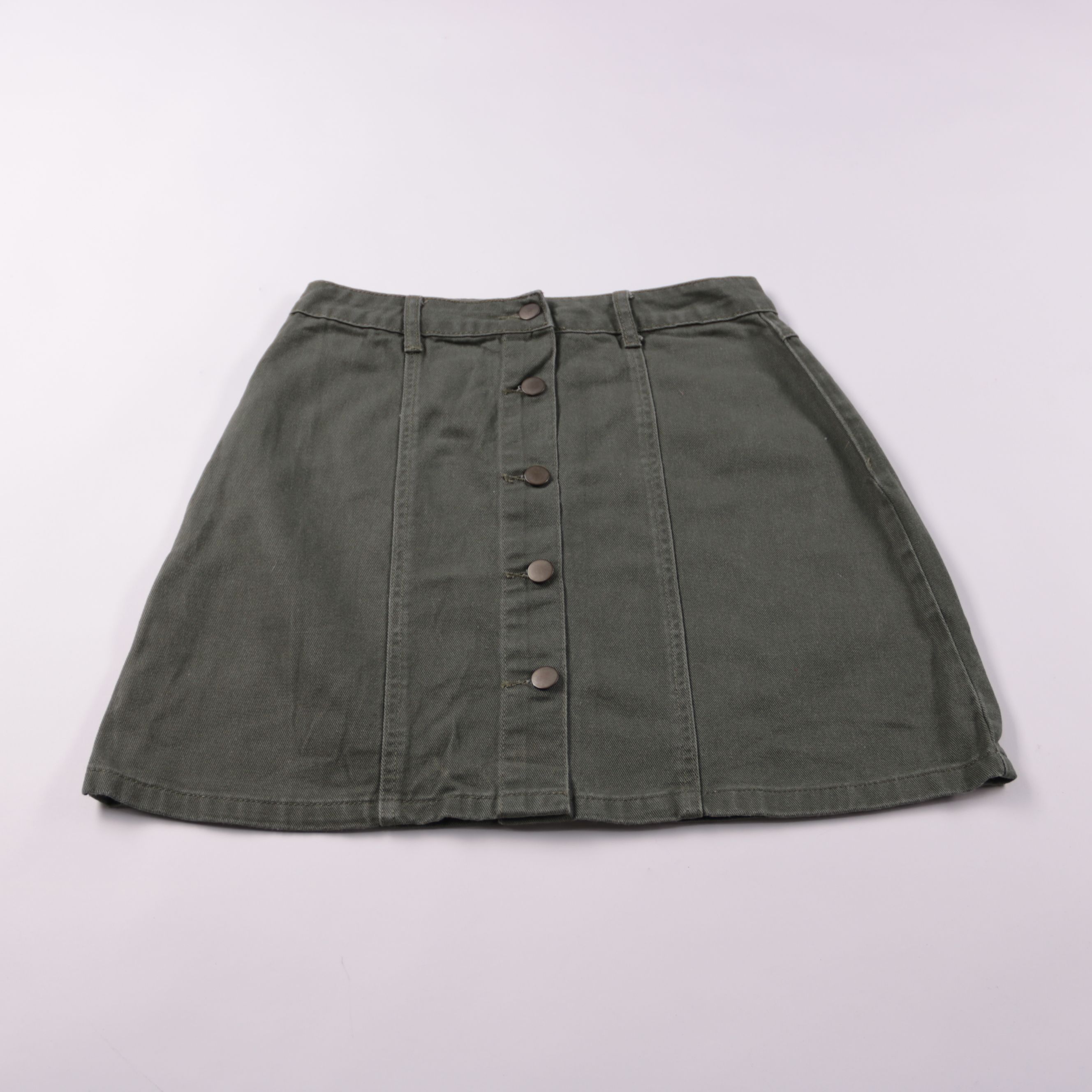 Юбка Papaya Weekend из плотной ткани в стиле деним, цвет хаки, на пуговицах спереди. Подойдёт для повседневных образов с футболками, рубашками и свитерами в тёплый сезон или с колготками в прохладу. Практичный плюс — удобная посадка на талии и застёжка...